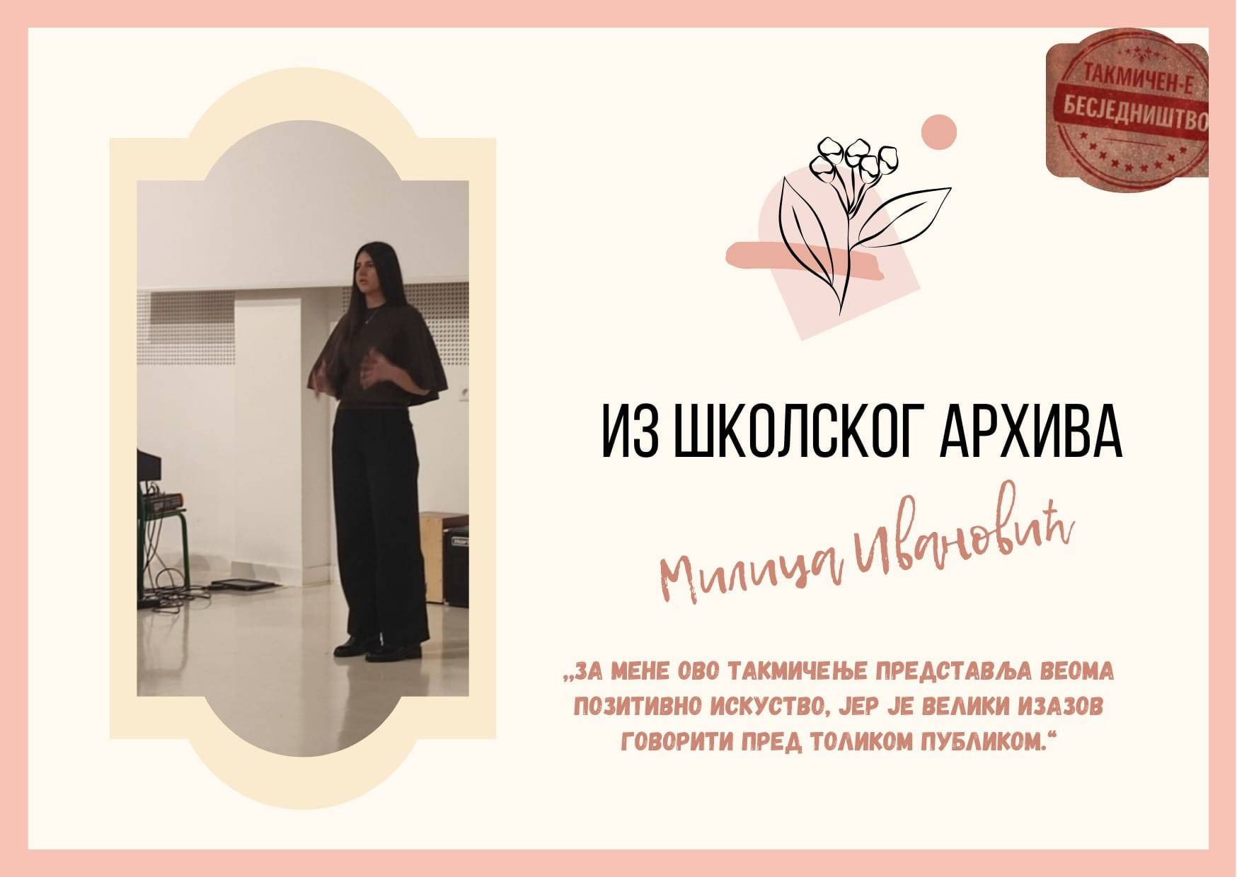 "Посебно ми се допада атмосфера међусобног поштовања и подршке која влада међу ученицима и особљем школе. Такође цијеним разноликост секција које су доступне, а које пружају прилику за развијање различитих вјештина и интересовања...